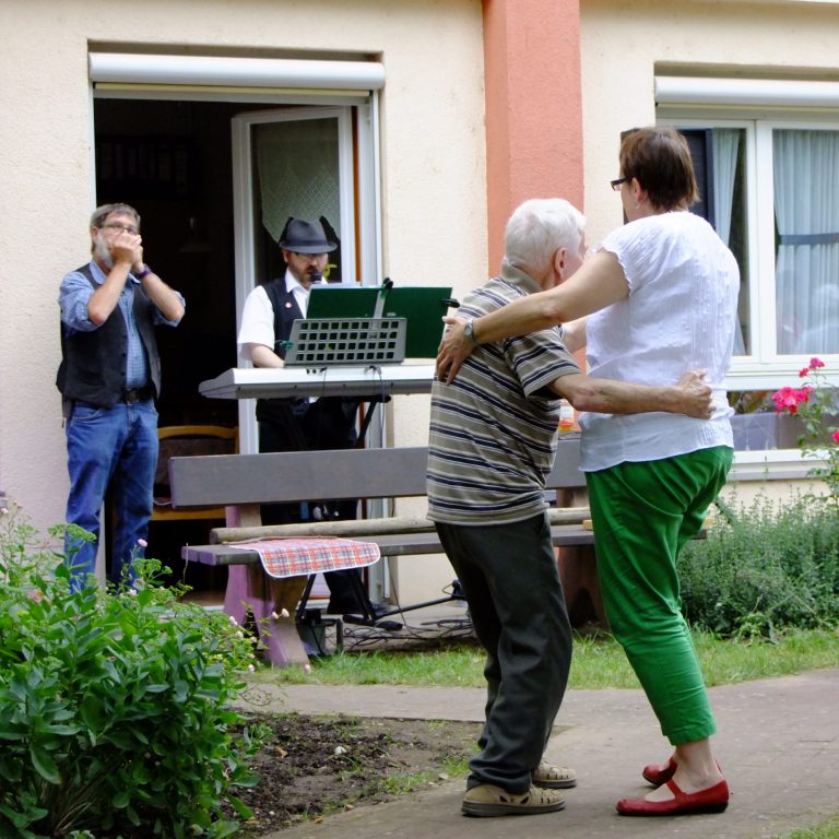 Gemeinsam spazieren gehen, bei der Gymnastik die Muskeln stärken und spielerisch Konzentration & Geist fit halten.